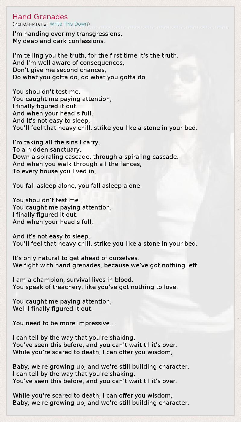 А как ты думаешь, о чем песня "Hand Grenades" ?