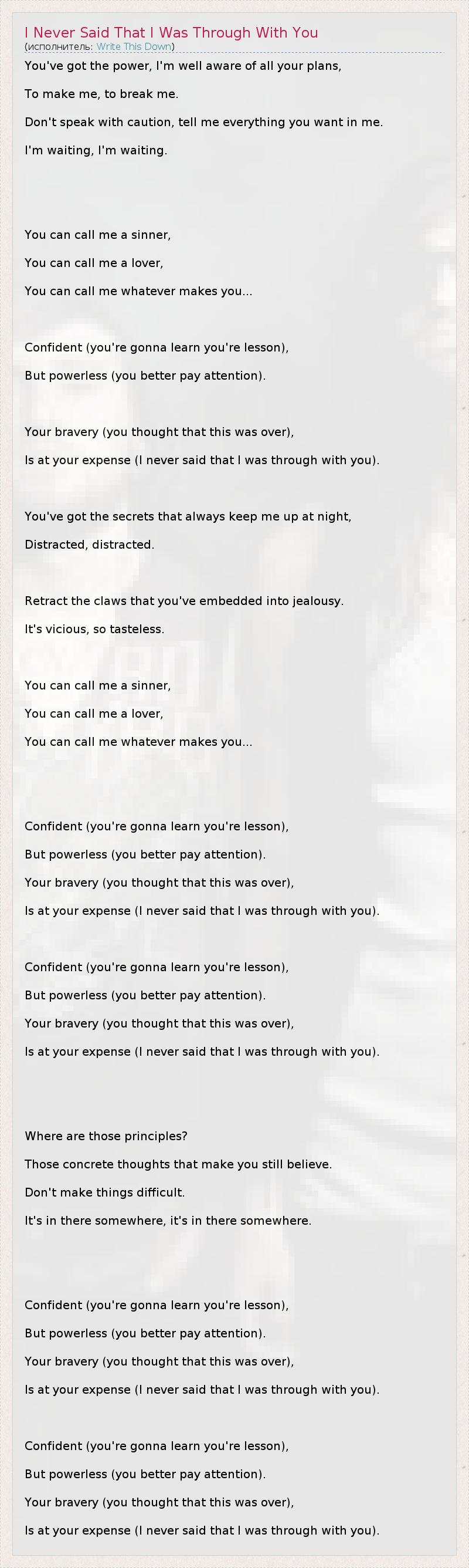 ГлавнаяИсполнителиWrite This DownI Never Said That I Was Through With You