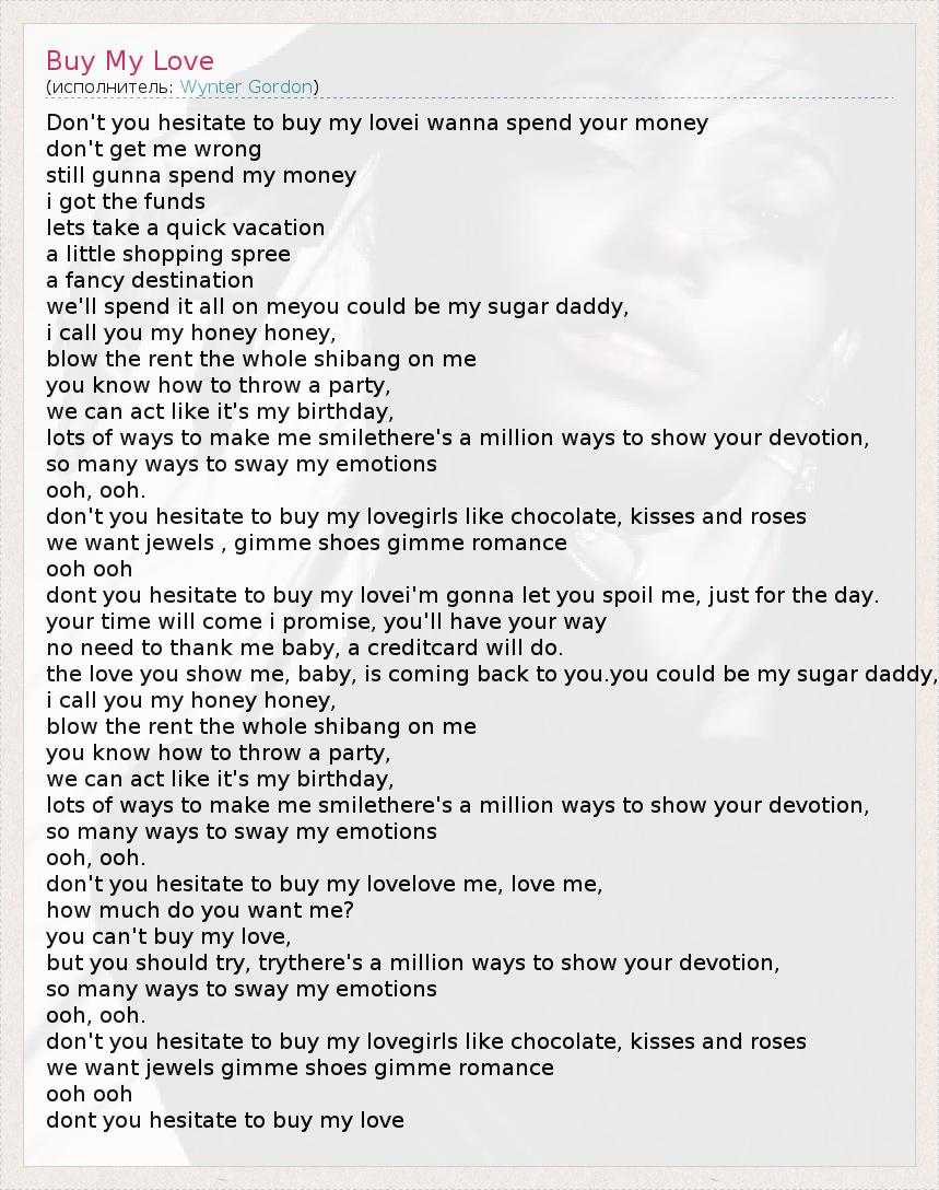 А как ты думаешь, о чем песня "Buy My Love" ?