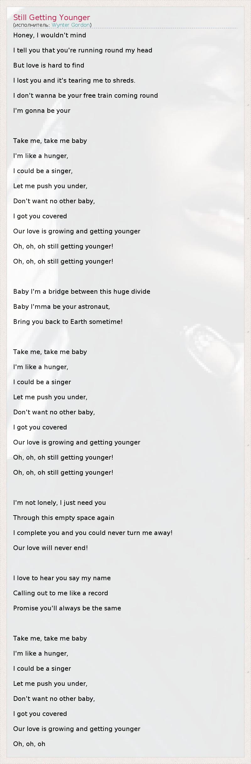 А как ты думаешь, о чем песня "Still Getting Younger" ?