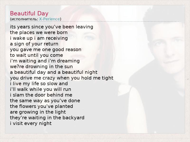 А как ты думаешь, о чем песня "Beautiful Day" ?