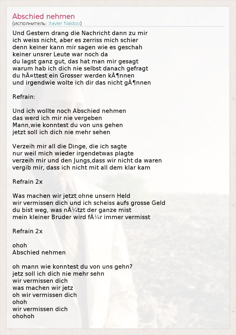 А как ты думаешь, о чем песня "Abschied nehmen" ?