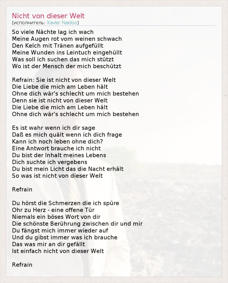 А как ты думаешь, о чем песня "Nicht von dieser Welt" ?