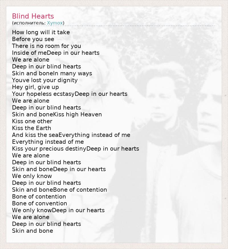 А как ты думаешь, о чем песня "Blind Hearts" ?