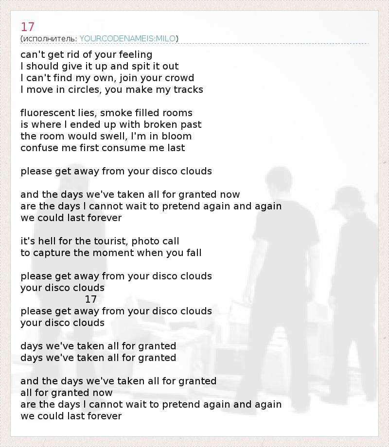 Это интересно:Совет группам,подписывающим контракт с леблом: так как вы планируете осуществить свою мечту,неплохо было бы и создать для себя определённое пространство. Так случилось с ньюкасловскими YOURCODENAMEIS:MILO, которые начали свой путь в 2004 году в роли любимчиков андеграунда, а в 2005-ом, будучи архитекторами восторженно принятого дебютного альбома ‘Ignoto’, стали объектом жёсткого сражения... продолжение