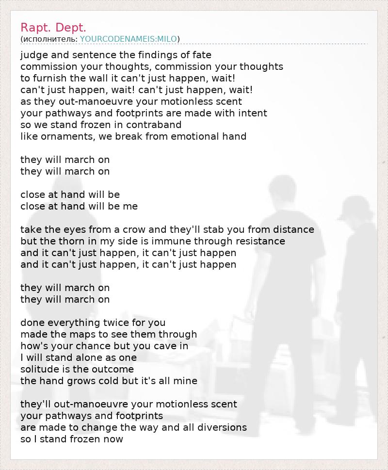 А как ты думаешь, о чем песня "Rapt. Dept." ?