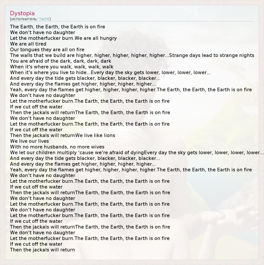 Then the jackals will returnThe Earth, the Earth, the Earth is on fire