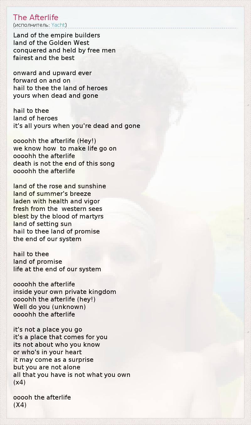 А как ты думаешь, о чем песня "The Afterlife" ?
