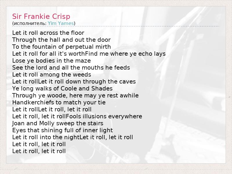 А как ты думаешь, о чем песня "Sir Frankie Crisp" ?
