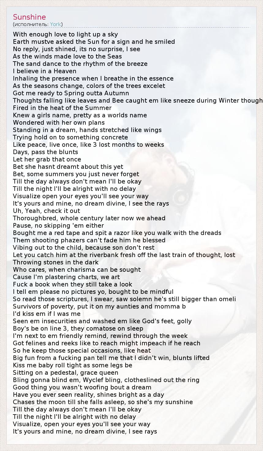 А как ты думаешь, о чем песня "Sunshine" ?