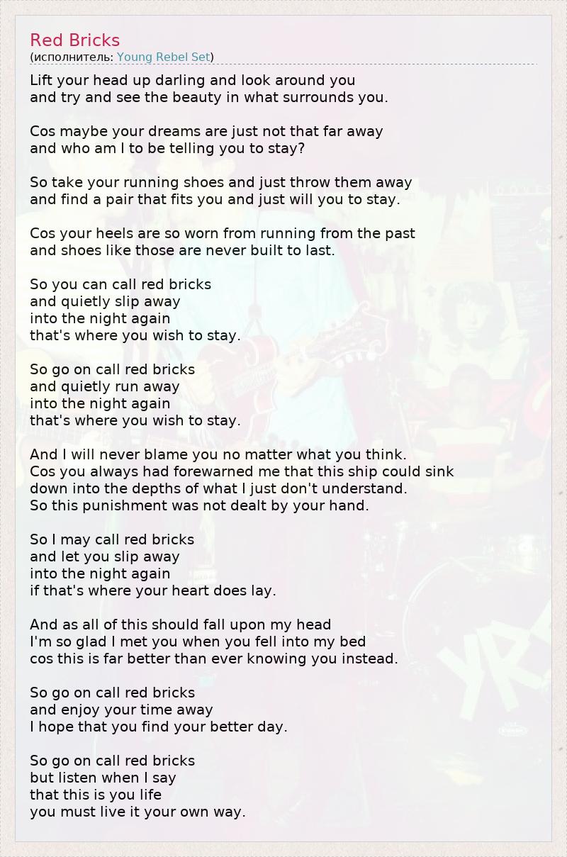 А как ты думаешь, о чем песня "Red Bricks" ?