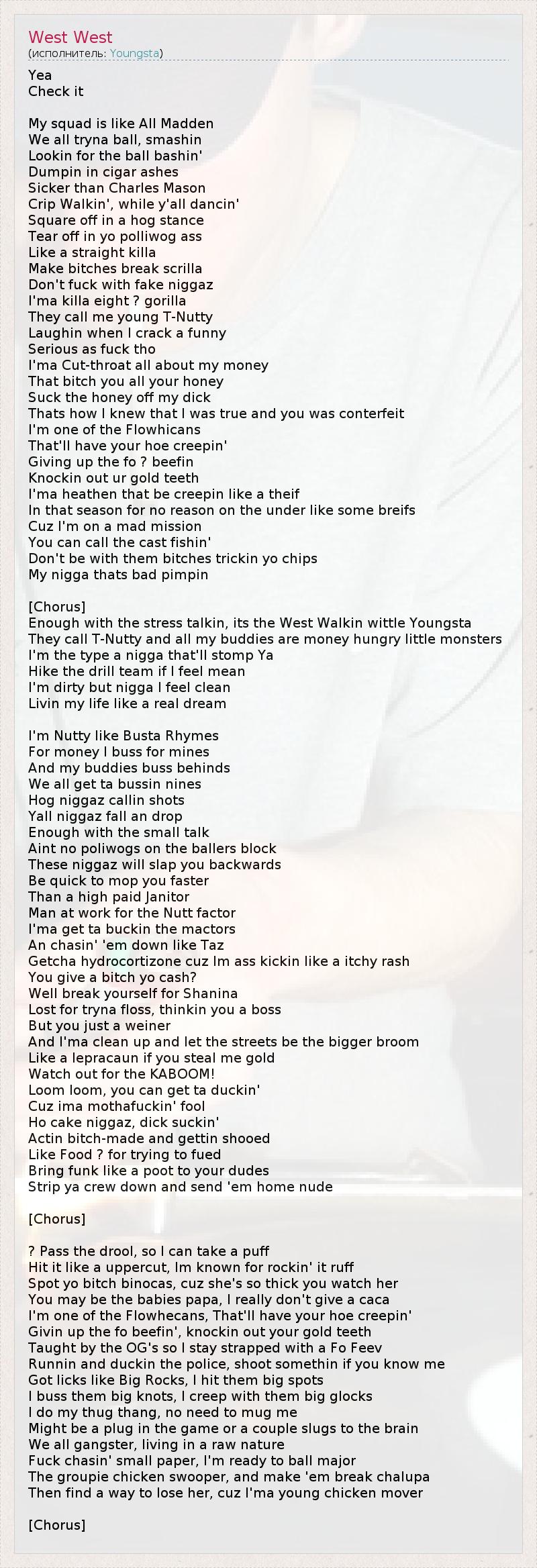 Enough with the stress talkin, its the West Walkin wittle Youngsta