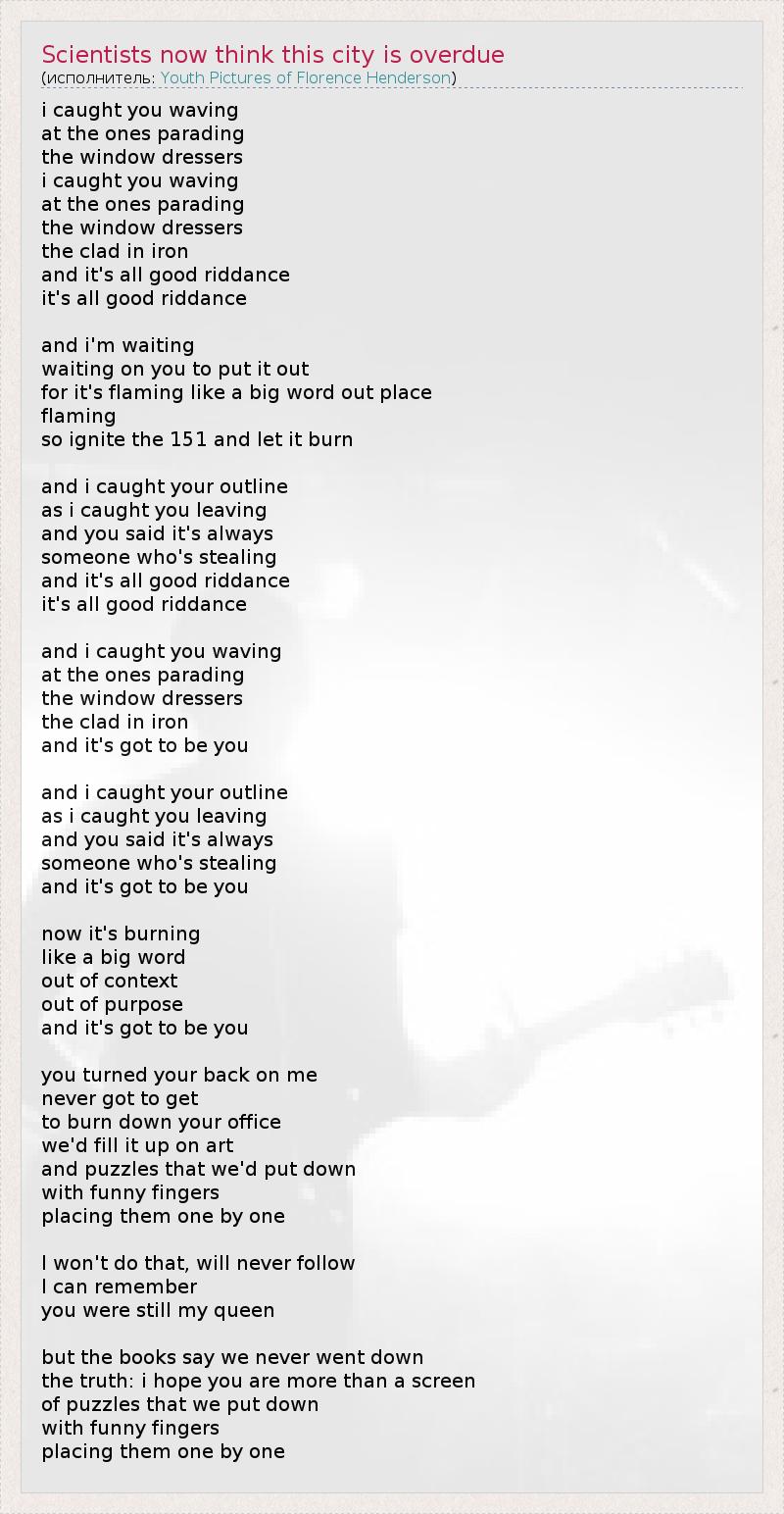 А как ты думаешь, о чем песня "Scientists now think this city is overdue" ?