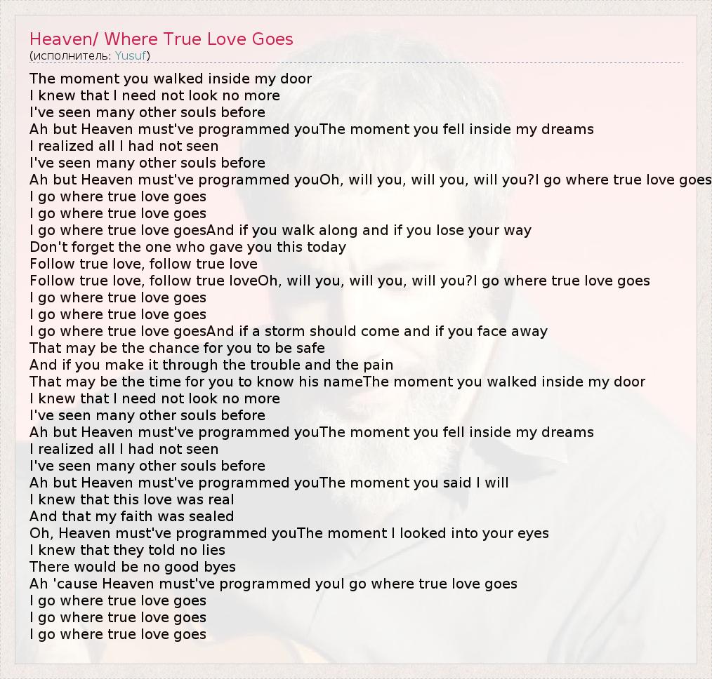 ГлавнаяИсполнителиYusufHeaven/ Where True Love Goes