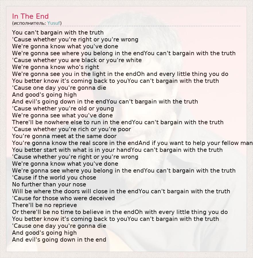 We're gonna see where you belong in the endYou can't bargain with the truth