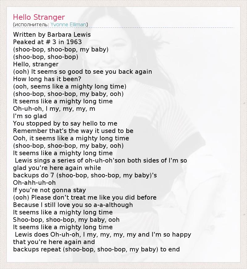 А как ты думаешь, о чем песня "Hello Stranger" ?