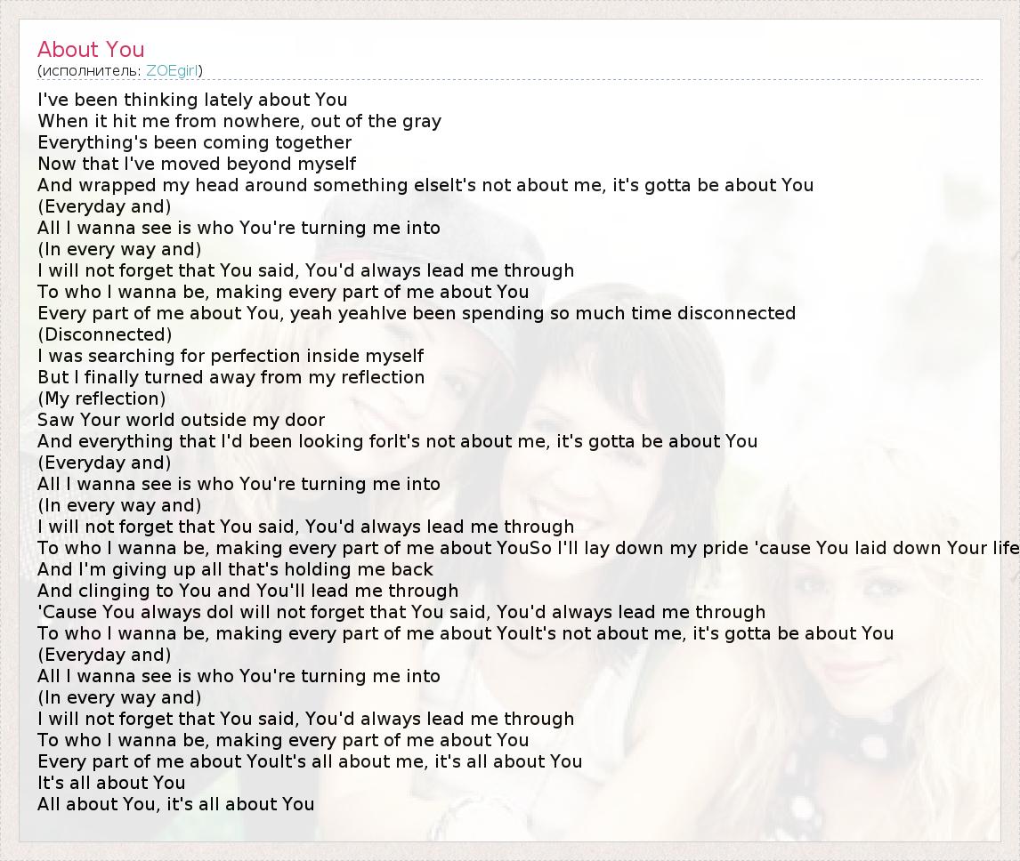 To who I wanna be, making every part of me about YouIt's not about me, it's gotta be about You