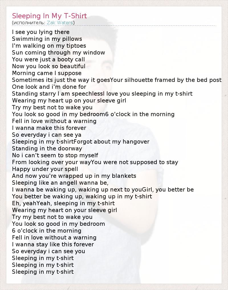 ГлавнаяИсполнителиZak WatersSleeping In My T-Shirt