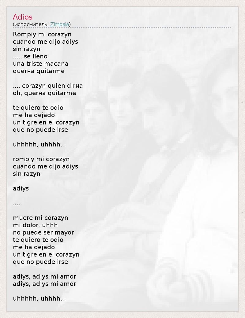 А как ты думаешь, о чем песня "Adios" ?