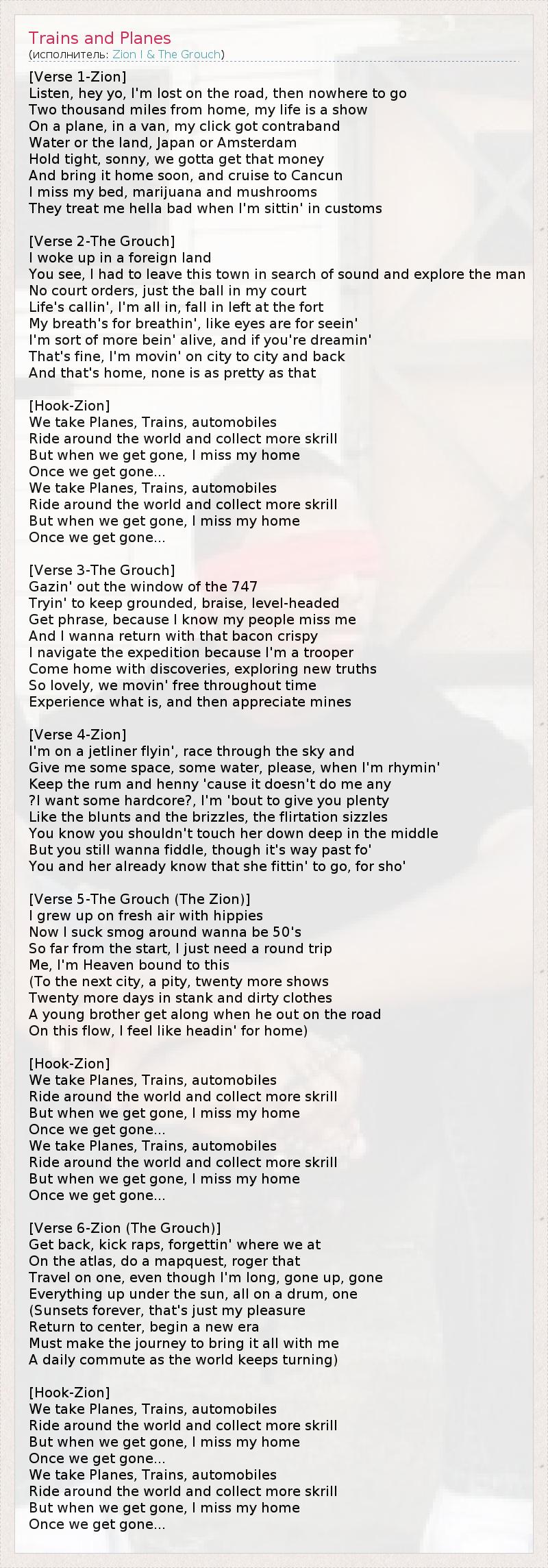 А как ты думаешь, о чем песня "Trains and Planes" ?