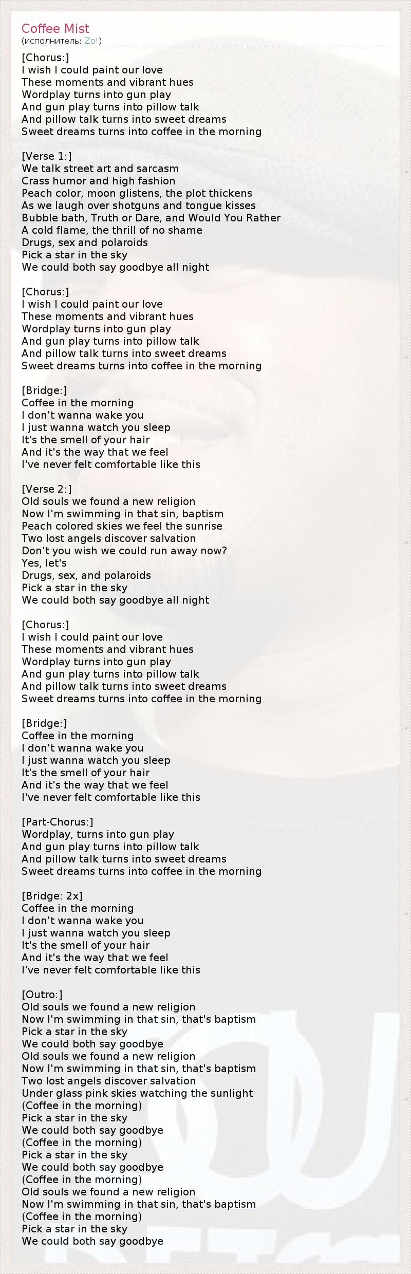 А как ты думаешь, о чем песня "Coffee Mist" ?