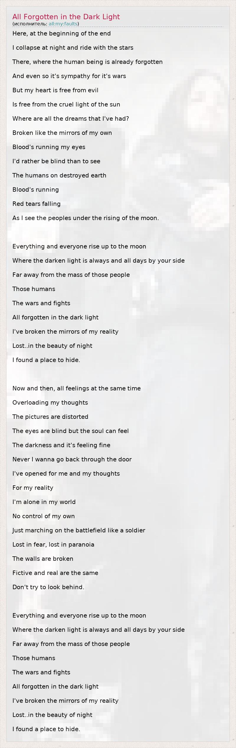 ГлавнаяИсполнителиall:my:faultsAll Forgotten in the Dark Light