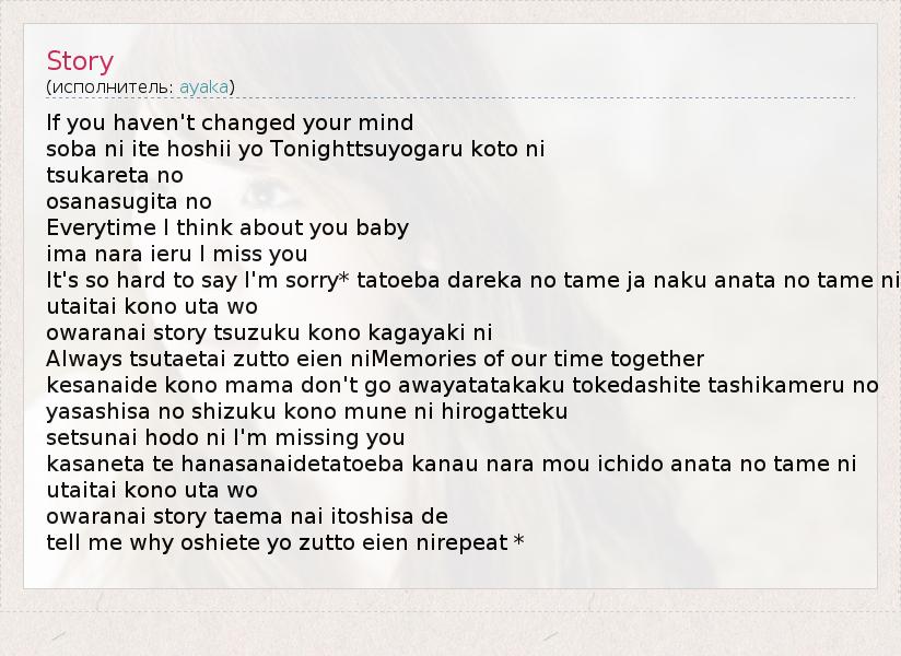 Это интересно:Пожалуйста, голосуйте за исправления тега на 絢香.Ayak’y, рожденную в 1987 году, просто не остановить. Первый контракт ayaka в музыкальном бизнесе был подписан еще в средней школе. Она очень быстро определилась с тем, что хочет стать профессиональной певицей, и ее первое выступление с группой состоялось в первый год старшей школы. Несмотря на то что девушка ограничилась... продолжение