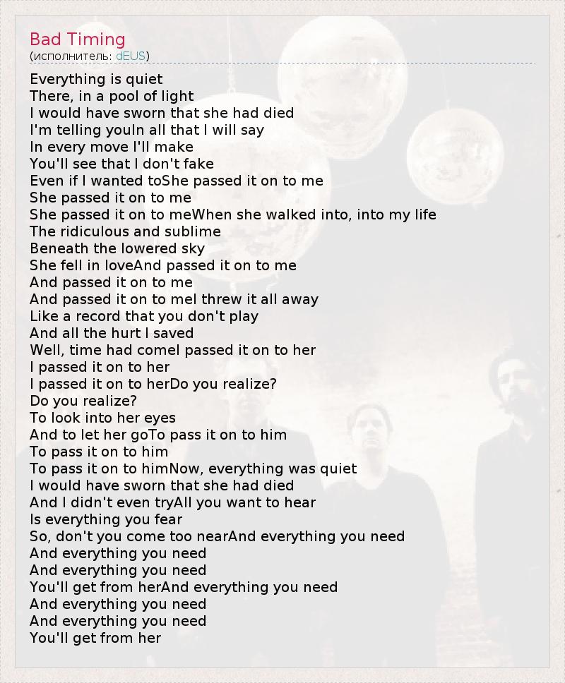 А как ты думаешь, о чем песня "Bad Timing" ?