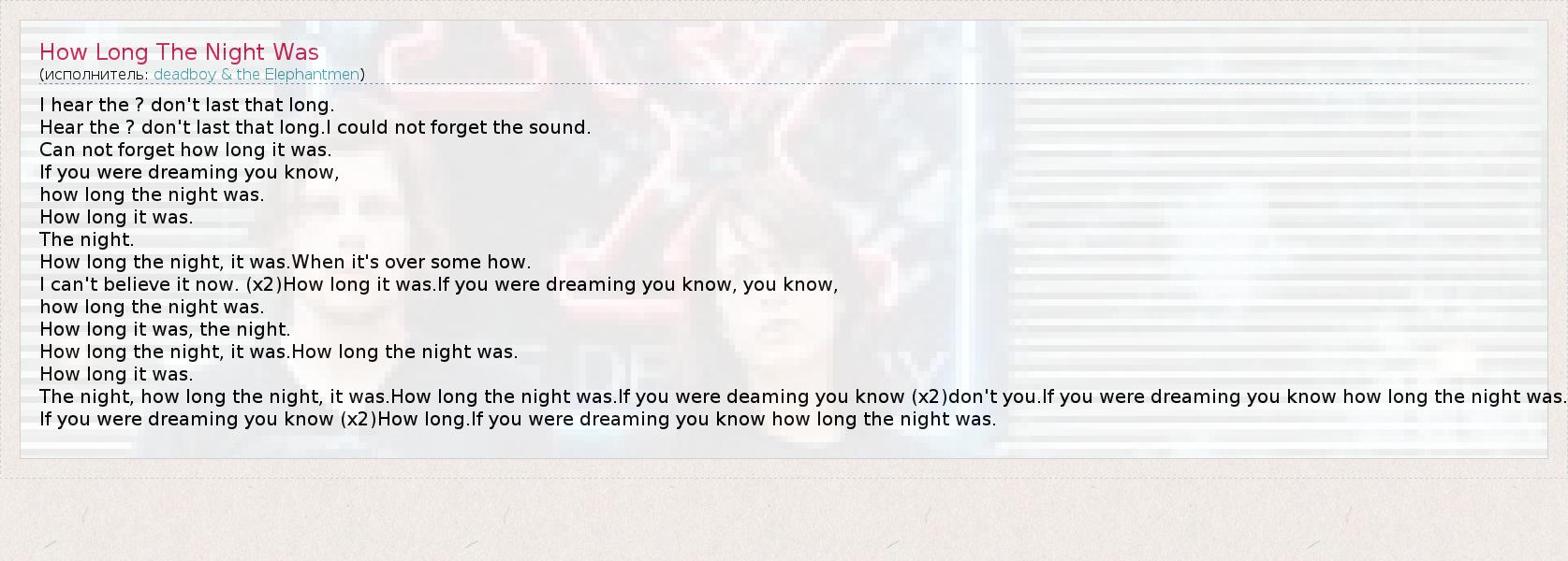 А как ты думаешь, о чем песня "How Long The Night Was" ?