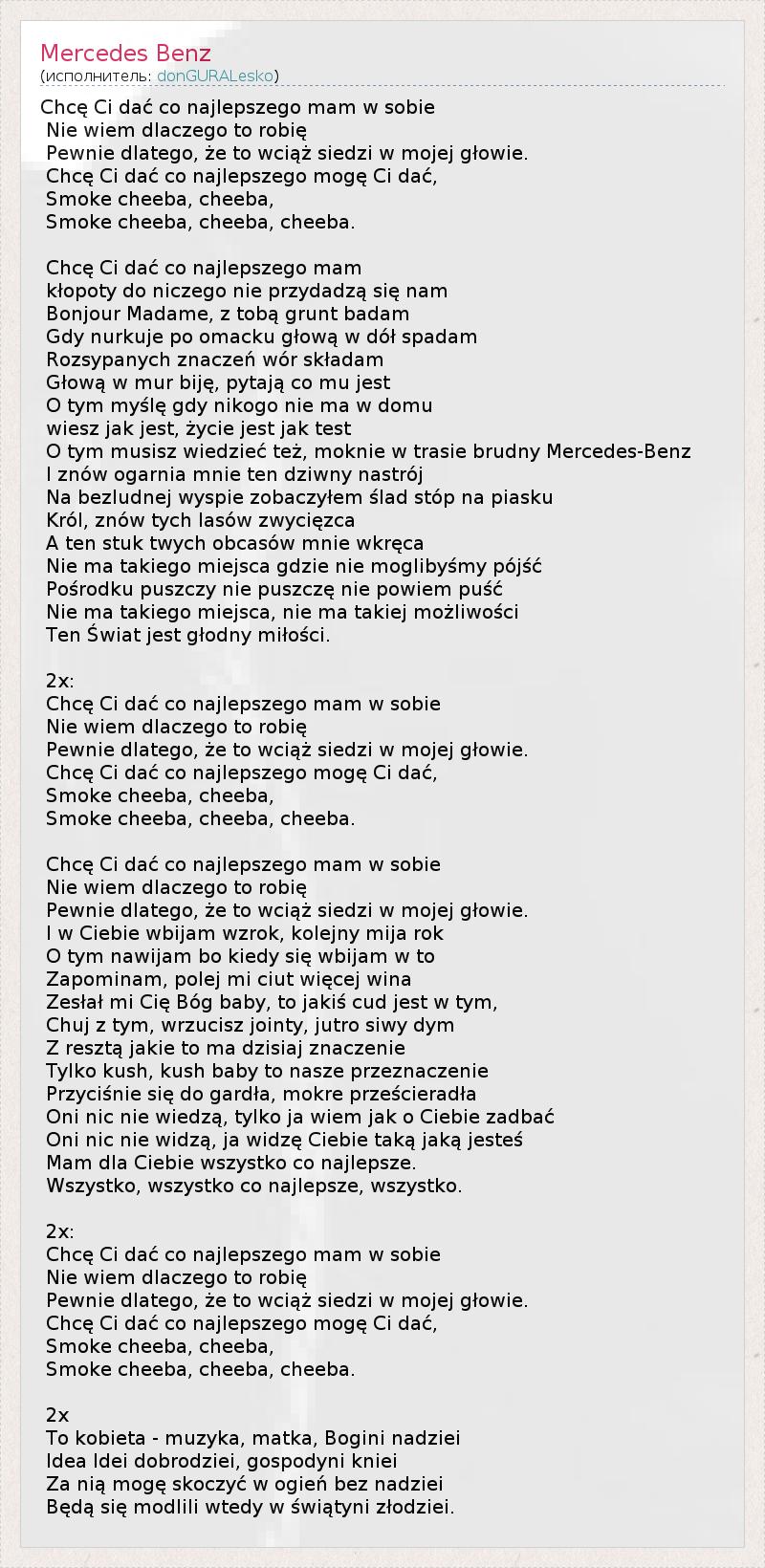 А как ты думаешь, о чем песня "Mercedes Benz" ?