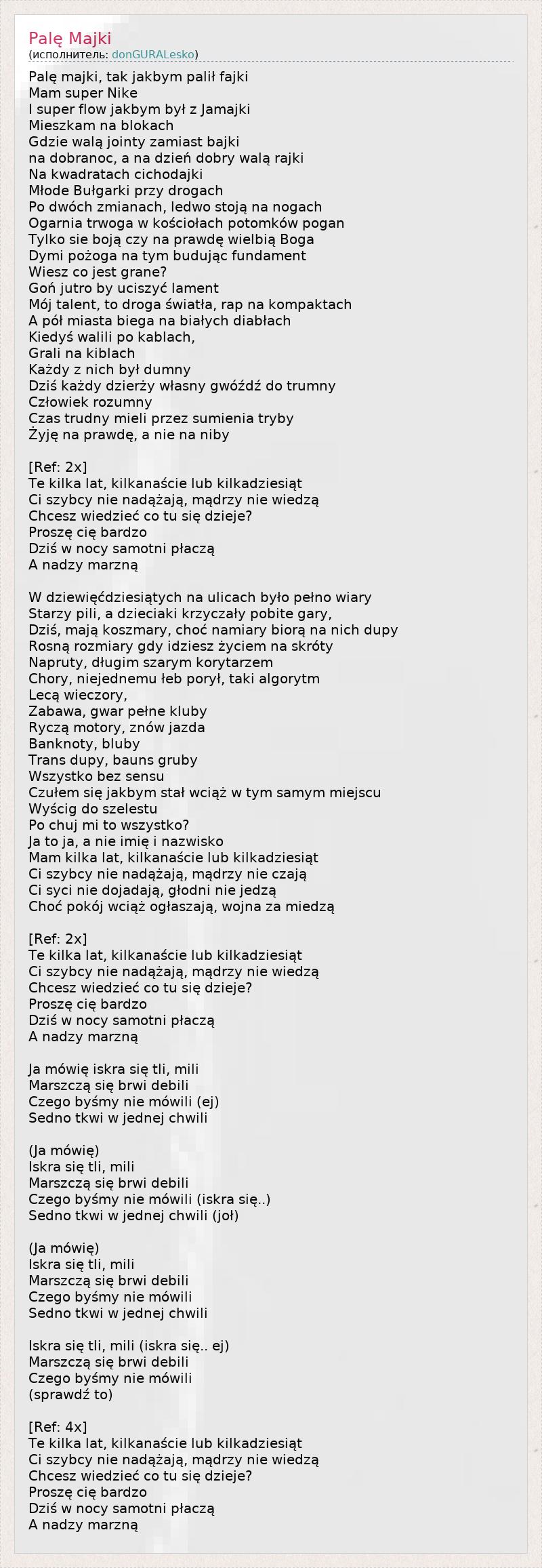 А как ты думаешь, о чем песня "Palę Majki" ?