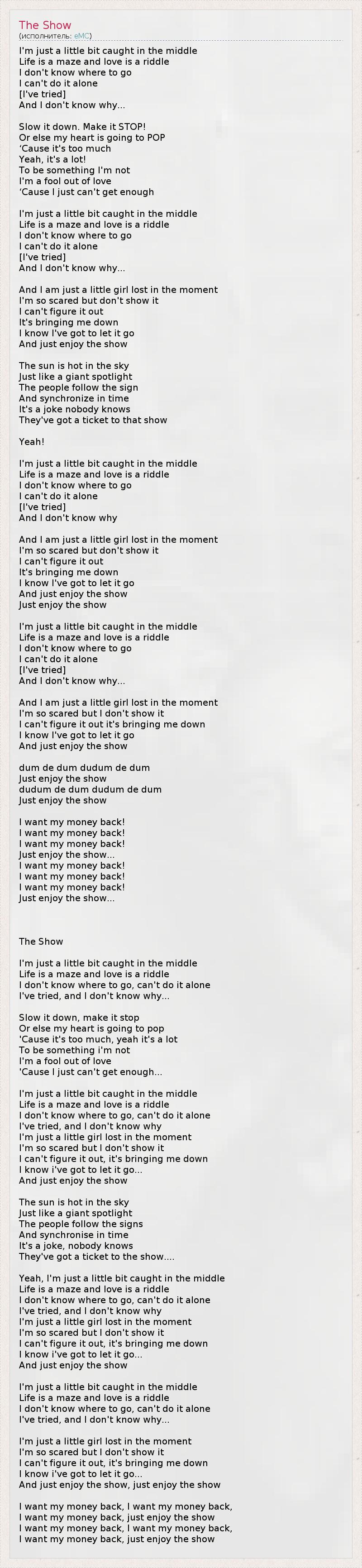 А как ты думаешь, о чем песня "The Show" ?