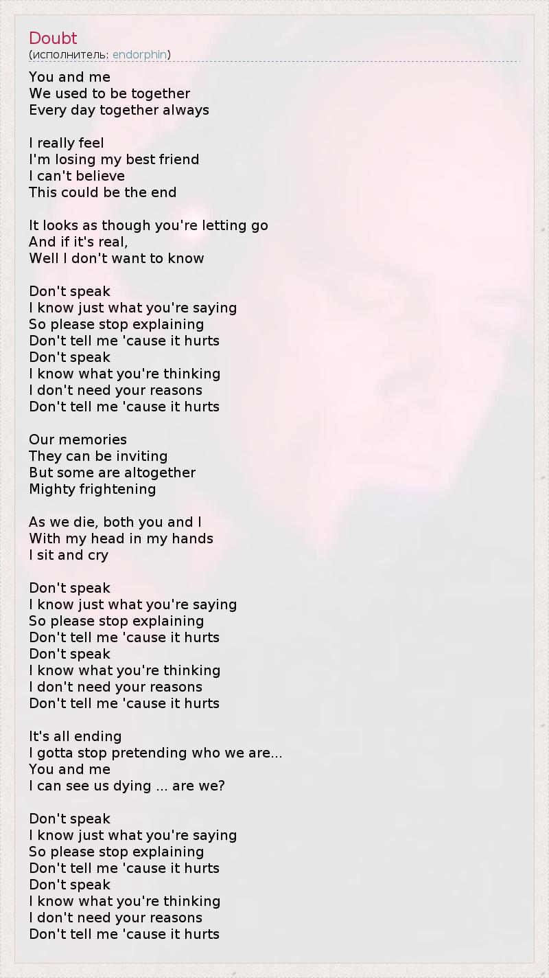 Это интересно:There are 3 bands with the name "Endorphin," one based in Australia, 2nd is based in the United States, and 3rd is from Edinburgh, Scotland Endorphin (aka Eric Chapus) has had a prodigious career to date. Since arriving in Australia in 1984 from France he has had several musical incarnations. Coming into the spotlight after being unearthed by JJJ in 1996 and delivering an impressive debut album “Embrace”, he has been dazzling his audiences with a live electronic show that weaves together an eclectic array of visual imagery and music to create a live production that explodes with an energy that seduces all the senses. It is theatre for the dance floor and art for the ears. Endorphin tours... продолжение