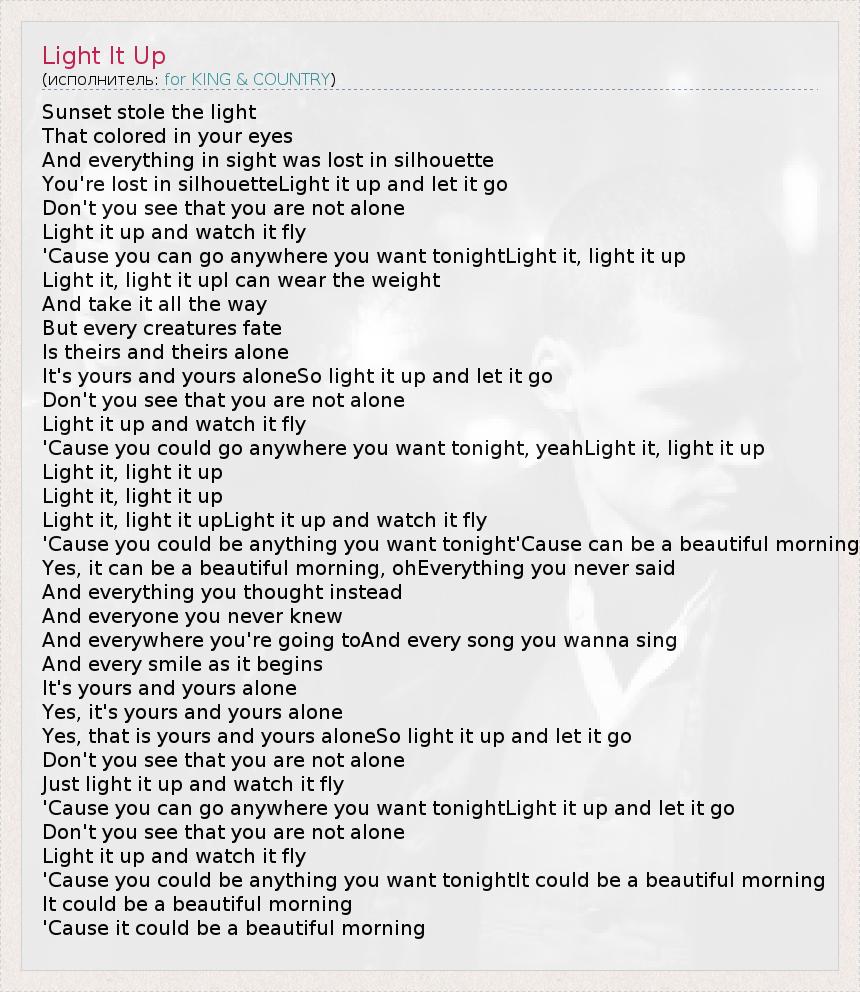 'Cause you can go anywhere you want tonightLight it up and let it go