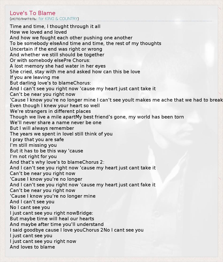 А как ты думаешь, о чем песня "Love's To Blame" ?
