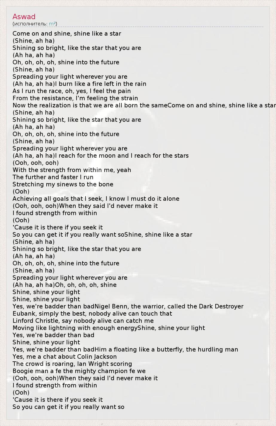 (Ah ha, ah ha)Oh, oh, oh, oh, shine