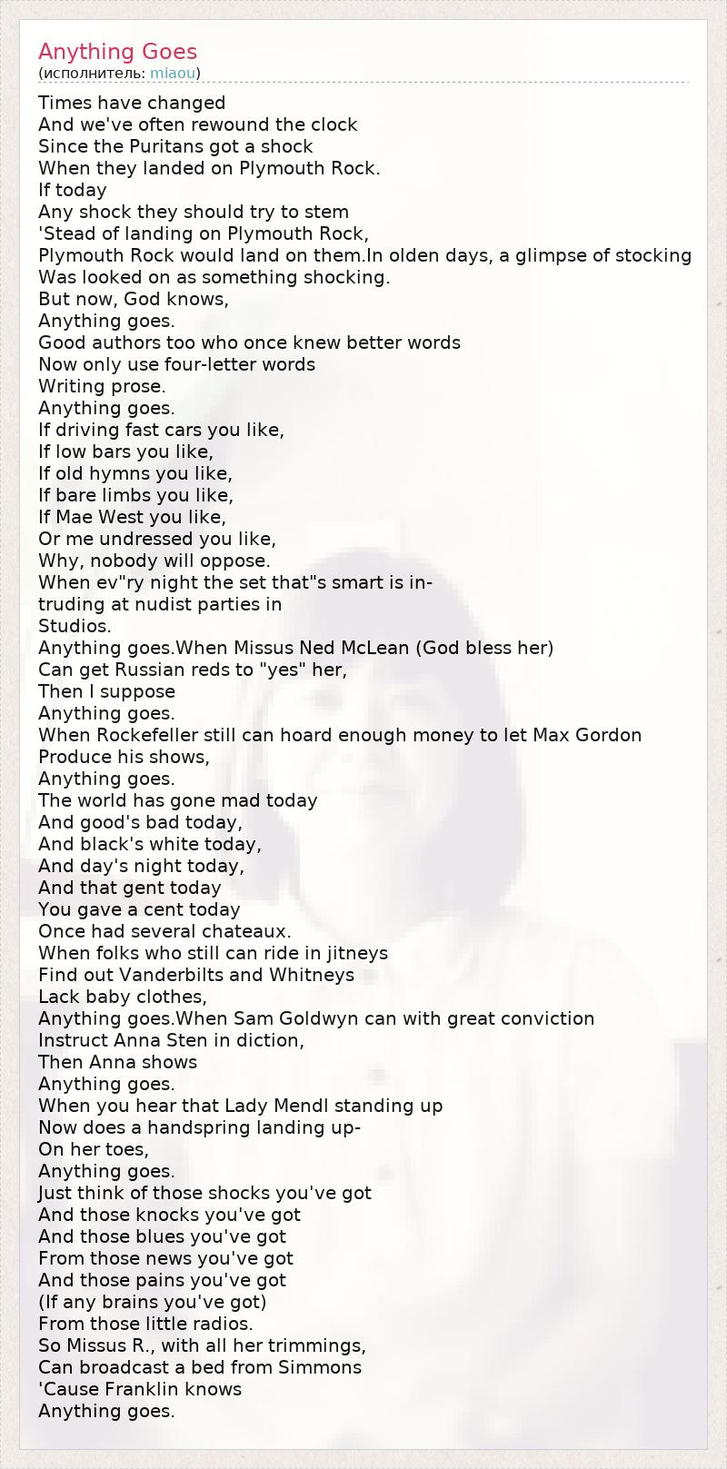 А как ты думаешь, о чем песня "Anything Goes" ?