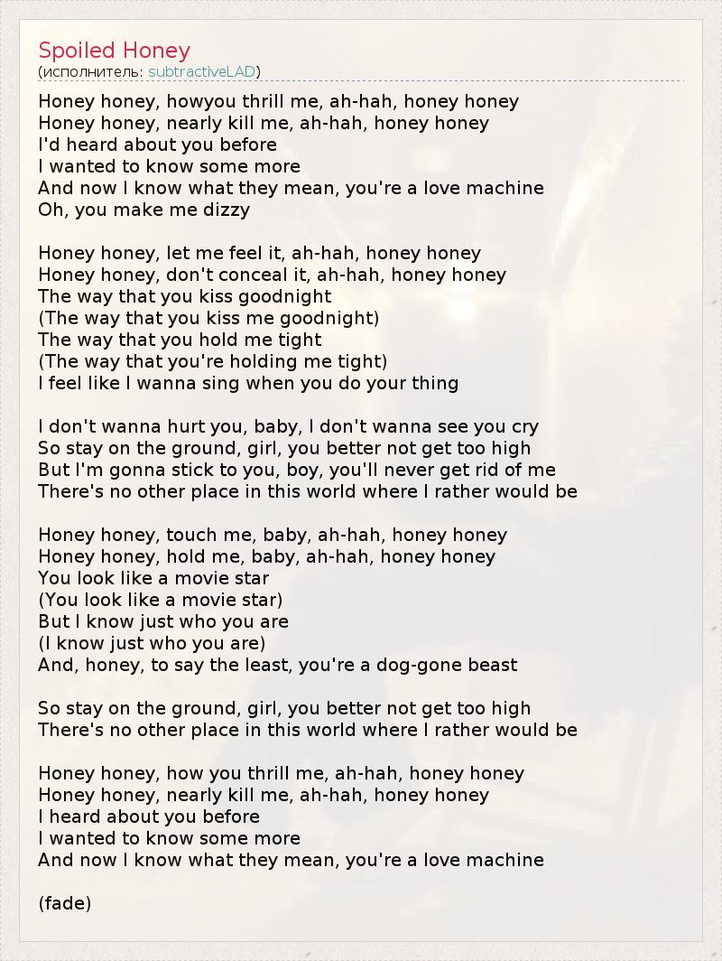Honey honey, nearly kill me, ah-hah, honey honey