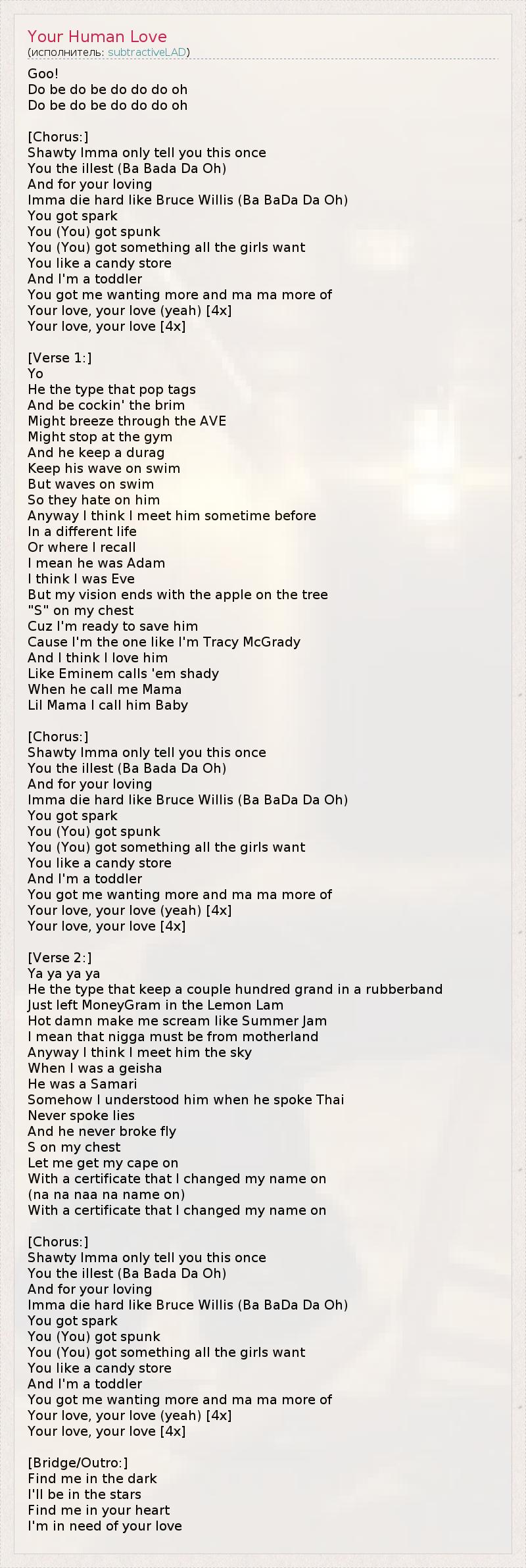 А как ты думаешь, о чем песня "Your Human Love" ?