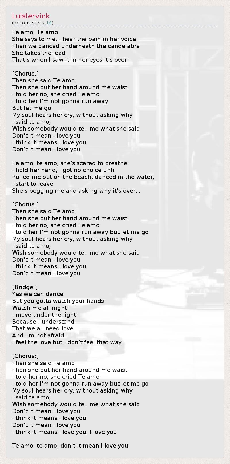 Te amo, te amo, разве это значит не "Я люблю тебя"??