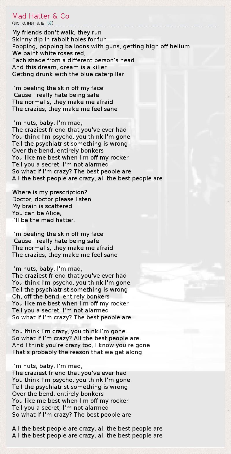 А как ты думаешь, о чем песня "Mad Hatter & Co" ?