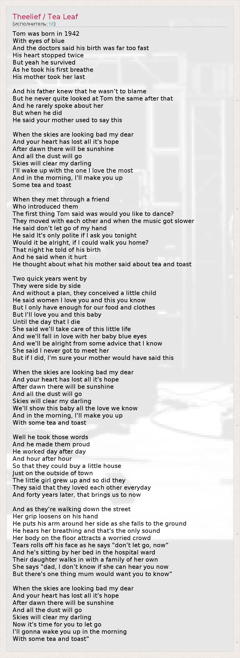 А как ты думаешь, о чем песня "Theelief / Tea Leaf" ?