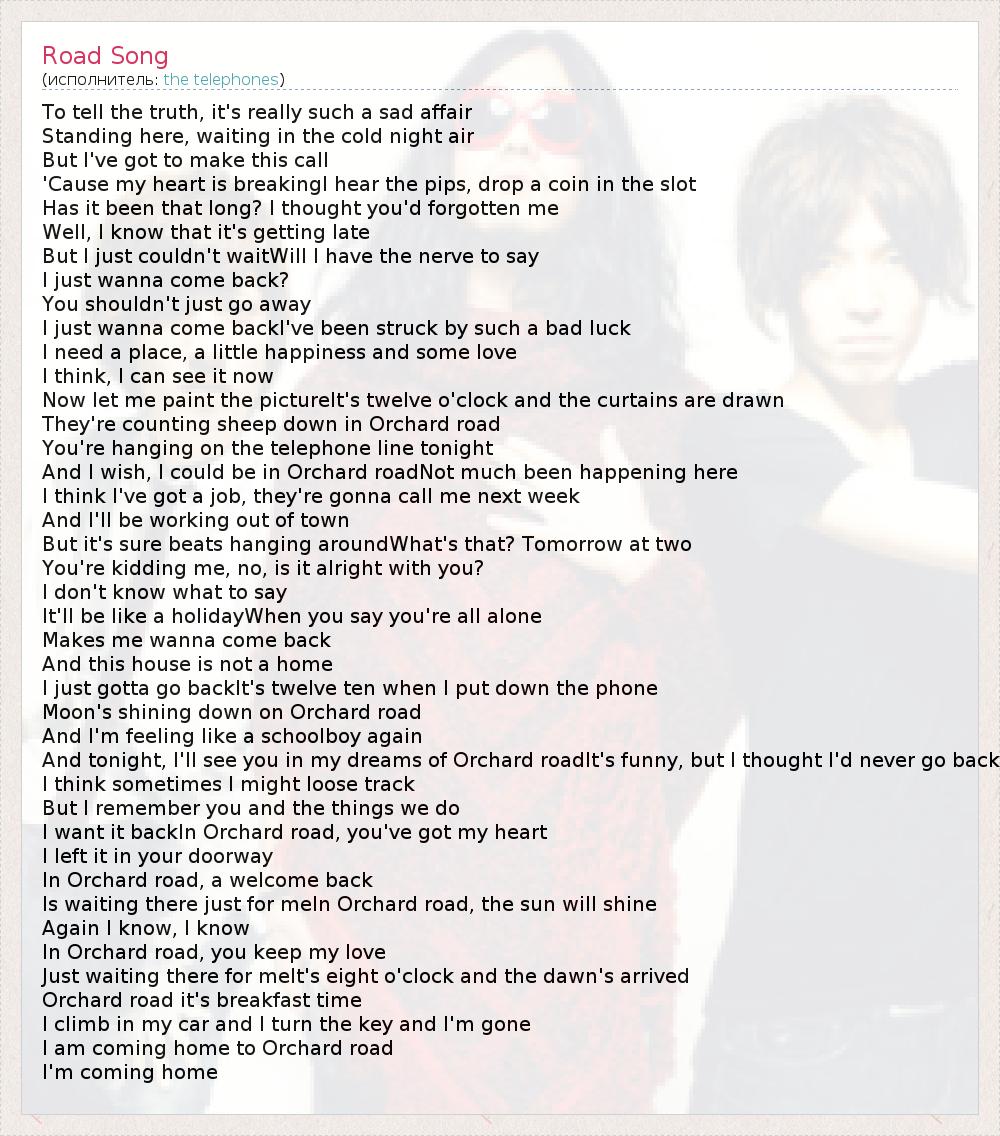 And tonight, I'll see you in my dreams of Orchard roadIt's funny, but I thought I'd never go back