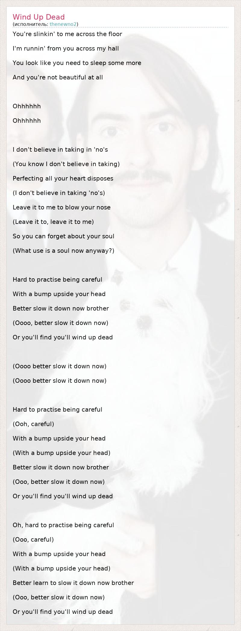 А как ты думаешь, о чем песня "Wind Up Dead" ?