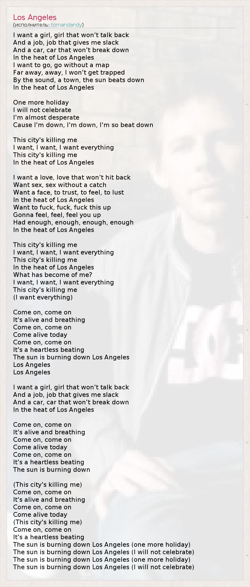 А как ты думаешь, о чем песня "Los Angeles" ?